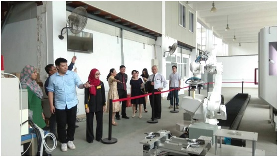 2017年5月24日,马来西亚三所大学使团到机电工程实践中心参观交流。