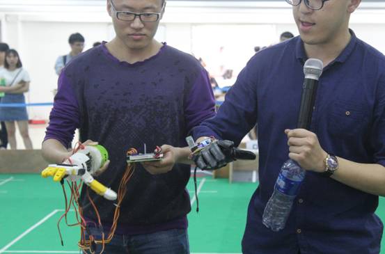 许多来到现场的青年教师和职工,对福大学生制作的机器人给予了很高的评价。许多老师带了自己的孩子来观看比赛,他们表示,希望小孩能接触一些高新科技,激发他学习的兴趣。比赛结束后,我们也为到场的小朋友们准备了小游戏“擂台机器人”。“擂台机器人”的游戏规则是红蓝双方通过遥控控制机器人,最先将对方推下擂台者获胜。在场的小朋友纷纷踊跃的参与游戏,最终获胜的小朋友获得了神秘大奖——四轴飞行器