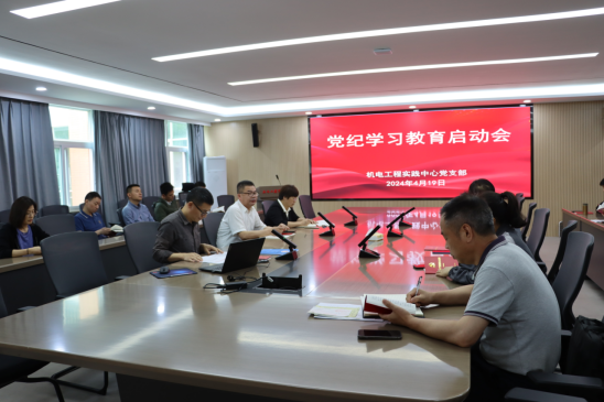 4 月 19 日,机电工程实践中心党支部召开党纪学习教育启动会,会议由支部书记向红亮同志主持。