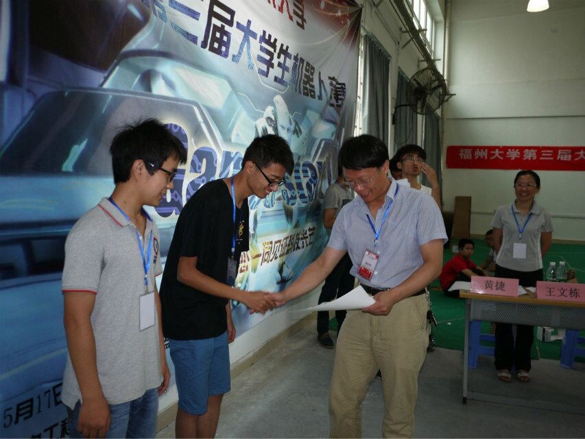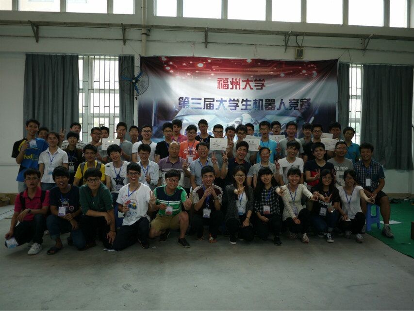 本次比赛由福州大学教务处主办,团委、学工处协办,福州大学机电工程实践中心、 机器人爱好者协会共同承办。福州大学大学生机器人竞赛是我校学生科技竞赛的重要品牌赛事活动,也是机电工程实践中心的特色项目,多年来致力打造学生提高动手能力、激发创新思维的重要平台,培养大学生的创新意识及动手能力,如李克强总理所言在广大学子中播撒创客种子。