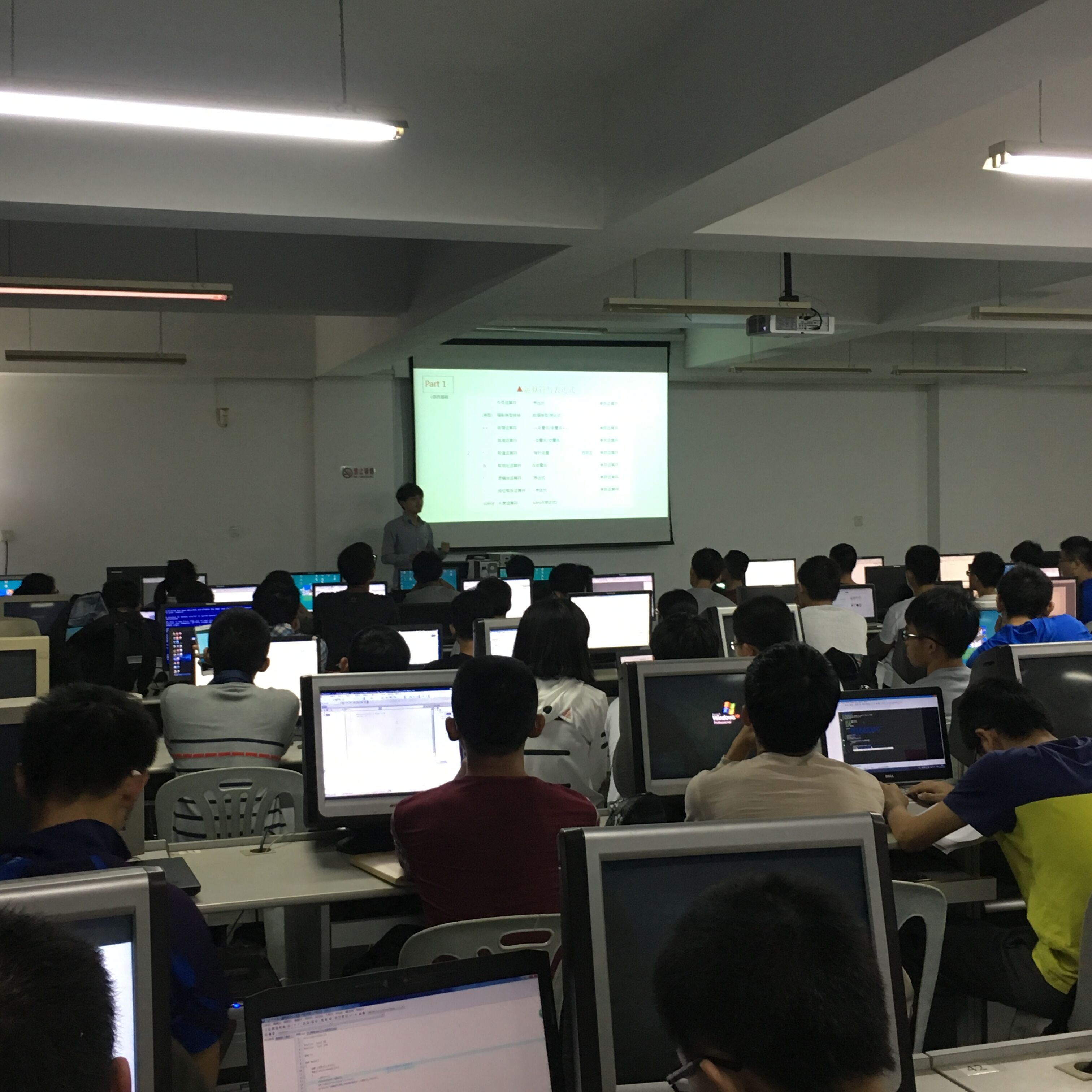 11月19日,福州大学机器人爱好者协会开展了第二次集体培训活动。培训地点为机电中心二楼的微机室。本次培训的主讲人为黄少杰,本次培训的内容为stm32单片机的基础知识。STM32系列是基于专为要求高性能、低成本、低功耗的嵌入式应用专门设计的ARM Cortex-0内核。按内核架构分为不同产品。活动中,到场人数约为75人,在培训的3个小时里,黄少杰同学为大家详细地讲解了stm32的相关知识与相关编程,如:按内核架构分为GPIO口、Io口输入输出模式、中断常用库、定时器等。本次培训难度比较高,不少同学都表示只能听懂30%,经过培训完之后学长在qq群里面的耐心讲解,同学们都表示自己收获颇多,对于下次的培训期待不已。